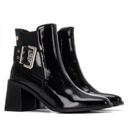 Botín de mujer, de la marca Xti. Fabricado en charol de alta calidad, con un elegante tacón forrado en imitación madera que aporta un toque sofisticado y moderno. El diseño estilo Chelsea se caracteriza por su facilidad de uso gracias a las gomas laterales, mientras que la hebilla lateral plateada añade un detalle de distinción y estilo. Este botín es ideal para quienes buscan un calzado versátil que combine elegancia y comodidad. Perfecto para complementar tanto looks casuales como más formales, y su suela antideslizante garantiza seguridad y estabilidad en cada paso.Plantilla extraíble.