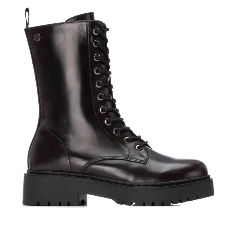 Botín de mujer, de la marca Xti. Fabricado en material que imita la piel, con un diseño estilo militar que le aporta un toque moderno y sofisticado. Con una caña de 19 cm, este modelo ofrece una altura ideal para un look estilizado y cómodo. La cremallera interior facilita el ajuste y la puesta, brindando mayor practicidad. Además, cuenta con una suela de 5 cm que ofrece estabilidad y confort durante todo el día. Perfecto para quienes buscan un botín versátil y elegante, ideal para combinar con diversos estilos y ocasiones. Este modelo ha obtenido el certificado vegano por la organización mundial PETA (Organización de los derechos de los animales).