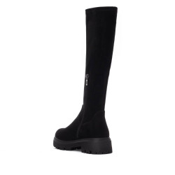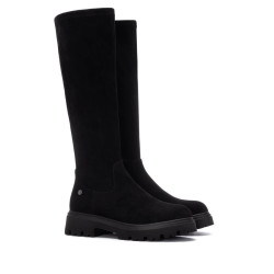 Bota de mujer, de la marca Xti. Fabricada en suave antelina. Esta bota plana cuenta con una suela gruesa que ofrece mayor comodidad y estabilidad al caminar. Su material elástico se ajusta perfectamente a la pierna, proporcionando un outfit cómodo y estilizado. Ideal para un look casual y moderno, esta bota es perfecta para el día a día, asegurando estilo y confort, además de contar con suela antideslizante para mayor seguridad. Este modelo ha obtenido el certificado vegano por la organización mundial PETA (Organización de los derechos de los animales).