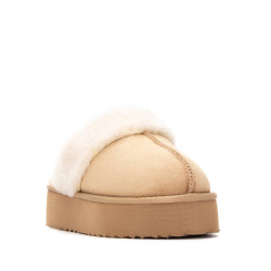 Zapatilla de mujer, de la marca Xti, confeccionada en suave antelina. Estilo tipo australiana, con goma para una mejor sujeción y forrada con pelo, perfecta para los días más fríos del invierno. Este modelo ha obtenido el certificado vegano por la organización mundial PETA (Organización de los derechos de los animales).