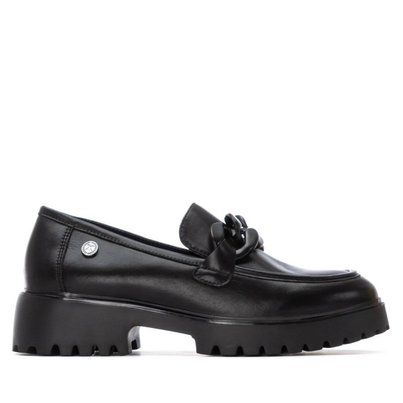 mocasin de mujer, de la marca Xti. Fabricada en material que imita la piel. Con detalle de cadena al tono que aporta elegancia. Suela de goma antideslizante. Este modelo se convertirá en un esencial básico para tu armario. Con plantilla extraíble. Este modelo ha obtenido el certificado vegano por la organización mundial PETA (Organización de los derechos de los animales).