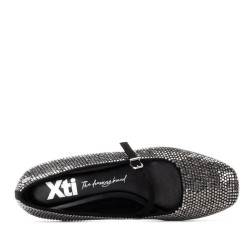 Bailarina de mujer, de la marca Xti. Fabricada en material de antelina decorada con cristales brillantes que añaden un toque de glamour. Su diseño elegante y cómodo es ideal para ocasiones especiales o para darle un toque chic a tu look diario. La suela garantiza confort, mientras que los detalles brillantes aportan sofisticación. Este modelo ha obtenido el certificado vegano por la organización mundial PETA (Organización de los derechos de los animales).