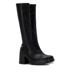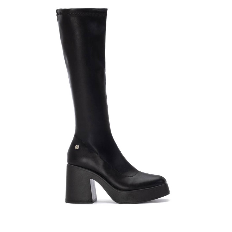 Bota de mujer, de la marca Xti. Fabricada en material que imita la piel, esta bota cuenta con un tacón de 9 cm y una ligera plataforma delantera que proporciona mayor comodidad y estabilidad al caminar. Su material elástico se ajusta perfectamente a la pierna, ofreciendo un outfit cómodo y estilizado. Ideal para quienes buscan elegancia y confort, esta bota es perfecta para diversas ocasiones, además de contar con suela antideslizante para mayor seguridad. Este modelo ha obtenido el certificado vegano por la organización mundial PETA (Organización de los derechos de los animales).