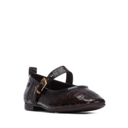 Zapato de mujer, de la marca Carmela. Fabricado en charol. Estilo bailarina con cierre mediante hebilla. Cómoda suela plana, antideslizante. Plantilla extraíble