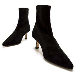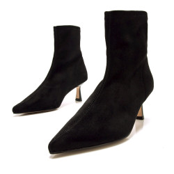 Botín negro de Mtng para mujer, modelo Ninette con diseño stretch que se ajusta al tobillo para un efecto estilizado. Incorpora tacón fino medio y puntera afilada, ideal para todo tipo de looks con un toque refinado. Su caña flexible proporciona un ajuste cómodo, mientras que el cierre lateral interior facilita su colocación. Perfecto para combinar con vaqueros, vestidos o faldas midi.
