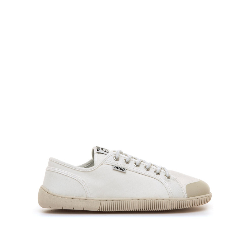 Zapatillas barefoot de color blanco para mujer de la marca Mtng, modelo Free Aria. Este diseño incorpora una puntera reforzada de color beige y suela a tono que aporta un contraste sutil. Su cierre de cordones con apliques metálicos asegura un ajuste cómodo y firme, mientras que el acabado en lona ligera ofrece versatilidad para diferentes looks. Diseñadas y desarrolladas especialmente en colaboración con el Dr. Juanjo López, traumatólogo deportivo, para respetar el desarrollo natural del pie. Se trata de un calzado minimalista que gracias a su puntera ancha, suela totalmente plana (cero drop) y flexibilidad, mejora la anatomía del pie y favorece una mejor posición del mismo. Se vende con una plantilla de transición para hacer el cambio de calzado convencional a minimalista de manera progresiva. Con certificado VEGANO sellado por INESCOP, el cual garantiza que la naturaleza química principal del material no se corresponde con fibras de origen animal.