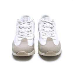 Zapatillas blancas Livana para mujer, de Mariamare. Estas zapatillas destacan por su combinación de materiales y detalles en beige. Tiene lentejuelas blancas completando su diseño y una suela gruesa que las hace cómodas para uso diario. ¡Livana de Mariamare son perfectas para ti!