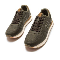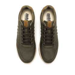 Zapatilla casual de color kaki para hombre de la marca Mtng, modelo Porland, de estilo urbano con acabado uniforme. Su diseño minimalista incorpora detalles en marrón en el talón y la lengüeta, junto con el logo lateral a tono que refuerza su estética discreta. Los cordones oscuros, la suela bicolor con base de goma y sus plantillas con tecnología Starfit, ofrecen mayor confort en cada pisada. Con certificado VEGANO sellado por INESCOP, el cual garantiza que la naturaleza química principal del material no se corresponde con fibras de origen animal.