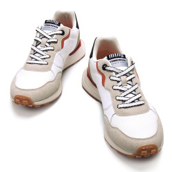 Zapatillas para hombre de la marca MTNG, modelo Zinc de color blanco, de estilo casual deportivo. Presenta una estructura combinada con paneles de color beige, marrón y naranja, además de una pieza acolchada en el talón de color azul marino a juego con la M bordada en el lateral. La suela con acabado dentado y refuerzo trasero en tono caramelo mejora la estabilidad en cada pisada. Incorporan una plantilla extraíble con tecnología Starfit y diseño termoconformado, que se adapta perfectamente al contorno del pie para ofrecer un soporte óptimo. Gracias a la espuma Comfort Foam, garantizan una amortiguación excepcional y comodidad durante todo el día.