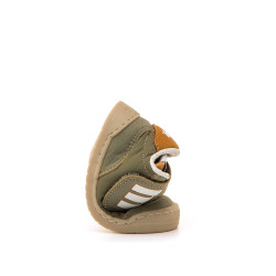 Zapatillas barefoot para bebé de la marca Mtng, modelo Free Baby de color verde kaki con detalles en camel. Incorpora doble cierre adhesivo para un ajuste fácil y seguro. Diseñada y desarrollada especialmente en colaboración con el Dr. Juanjo López, traumatólogo deportivo e infantil, para respetar el desarrollo natural del pie de los niños. Gracias a su puntera ancha permite el libre movimiento de los dedos dentro del zapato. Su suela tiene 3 mm de grosor y con zero drop (totalmente plana) respeta el natural desarrollo del pie del pequeño y sus elementos flexibles y torsionables hace que el pie del niño no esté encorsetado por la estructura del zapato. Las plantillas extraíbles facilitan comprobar si la talla del calzado es la correcta para tu hijo. Además, su fácil apertura facilita que el niño pueda descalzarse y calzarse de forma autónoma. Con certificado VEGANO sellado por INESCOP, el cual garantiza que la naturaleza química principal del material no se corresponde con fibras de origen animal. Acompaña los primeros pasos de tu bebé con mtng.