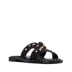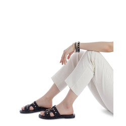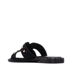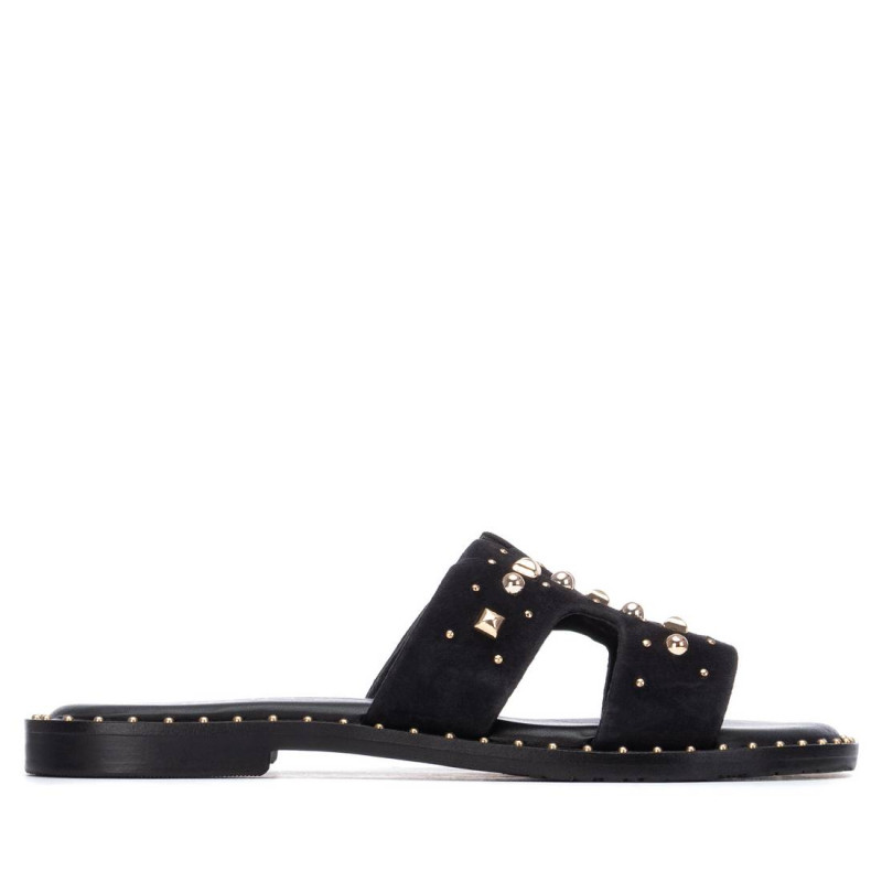 Sandalia de mujer, marca Carmela. Fabricada en suave material. Diseño con apliques metálicos y tachas en el lateral que están tan en tendencia. Combinará con todos tus looks de esta temporada. Cómoda planta y suela de goma antideslizante.