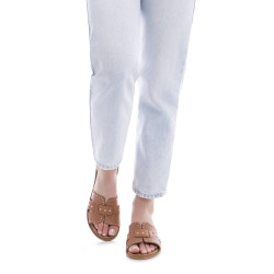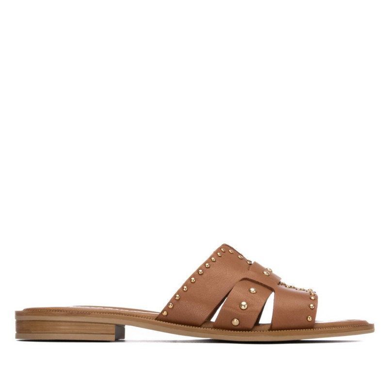 Sandalia de mujer, marca Carmela. Fabricada piel de alta calidad. Diseño con apliques metálicos que están tan en tendencia. Combinará con todos tus looks de esta temporada. Cómoda planta y suela de goma antideslizante.
