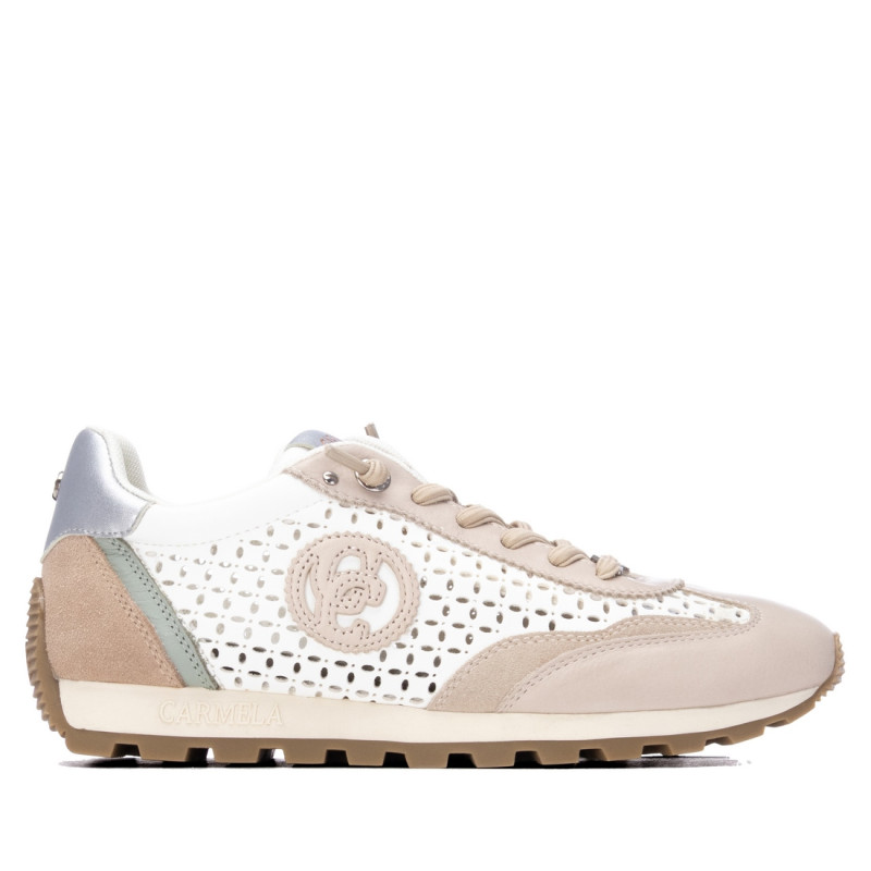 Zapatilla de mujer, marca Carmela. Fabricado en piel de alta calidad. Diseño calado decorativo. Colores combinados y metalizados ideal para esta temporada de verano. Adorno lateral que le da más elegancia Con plantilla extraíble. Cierre mediante cordones regulables para mayor comodidad. Cómoda planta y suela antideslizante.
