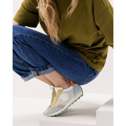 Zapatilla de mujer, marca Carmela. Fabricado en piel de alta calidad. Diseño calado decorativo. Colores combinados y metalizados ideal para esta temporada de verano. Adorno lateral que le da más elegancia Con plantilla extraíble. Cierre mediante cordones regulables para mayor comodidad. Cómoda planta y suela antideslizante.