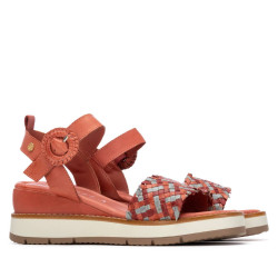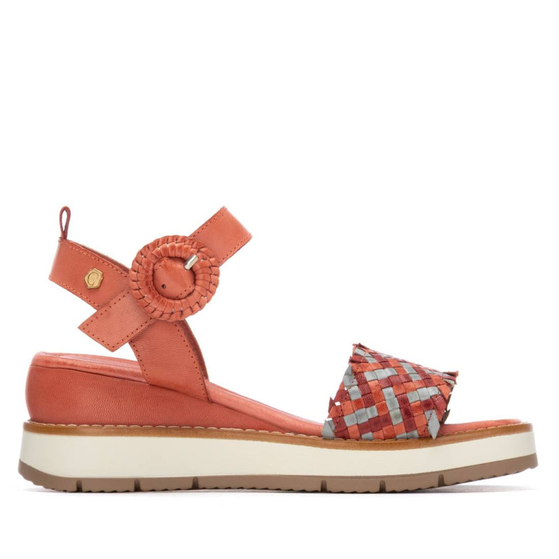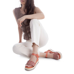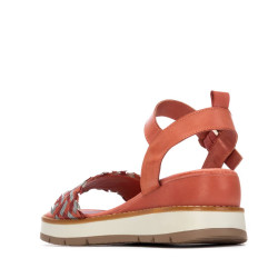 Sandalia de mujer, marca Carmela. Fabricada piel de alta calidad. Diseño trenzado multicolor con cierre al tobillo para mejor sujeción. Combinará con todos tus looks de esta temporada. Cómoda planta y suela con cuña de goma antideslizante.