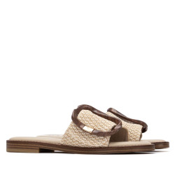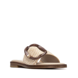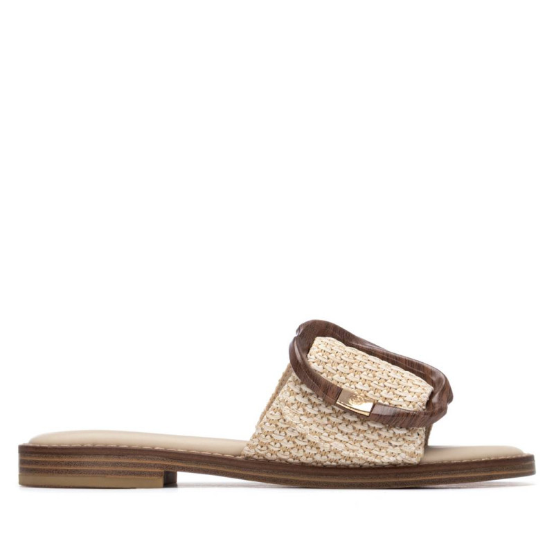 Sandalia de mujer, marca Carmela. Fabricada en material tipo rafia. Diseño con adorno frontal para aportar mayor elegancia. Combinará con todos tus looks de esta temporada. Cómoda planta y suela de goma antideslizante.