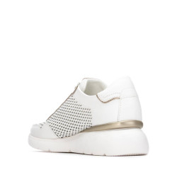Zapatilla de mujer, marca Carmela. Fabricado en piel de alta calidad. Diseño calado decorativo ideal para esta temporada. Con plantilla extraíble. Cierre mediante cordones regulables para mayor comodidad. Piso deportivo con volumen y suela de goma antideslizante.
