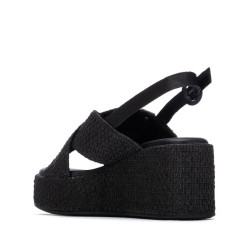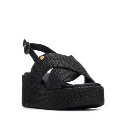 Sandalia de mujer, marca Carmela. Fabricada en material tipo rafia. Pala de tiras cruzadas y diseño trenzado . Cierre mediante correa al tobillo con hebilla. Cómoda planta y plataforma de 8 cm. Suela antideslizante.