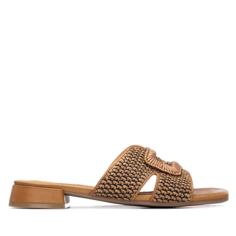 Sandalia de mujer, marca Carmela. Fabricada en material tipo rafia. Diseño trenzado con adorno frontal para mayor elegancia. Combinará con todos tus looks de esta temporada. Cómoda planta y suela de goma antideslizante.