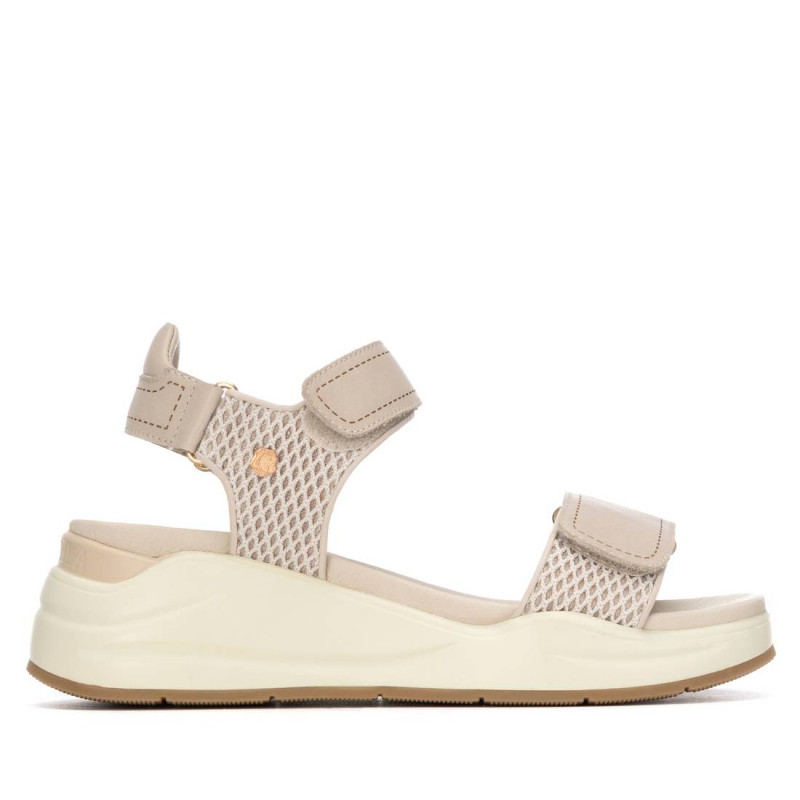 Sandalia de mujer, de la marca Carmela. Fabricado con piel de alta calidad. Modelo cómodo y estiloso combinable con distintos looks este verano. Cierre mediante tira adherente. Cómoda planta y suela de goma antideslizante.