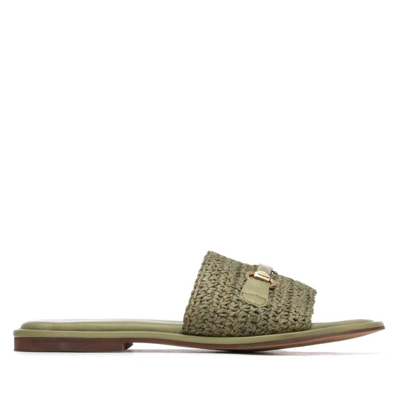 Sandalia de mujer, marca Carmela. Fabricada en material tipo rafia. Diseño con adorno frontal para aportar mayor elegancia. Combinará con todos tus looks de esta temporada. Cómoda planta y suela de goma antideslizante.