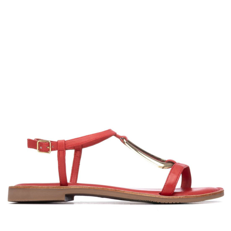 Sandalia de mujer, marca Carmela. Fabricada piel de alta calidad. Diseño de tiras con adorno metálico frontal para aportar mayor elegancia. Variedad de colorido que combinará con todos tus looks de esta temporada. Tira trasera con cierre de hebilla para una mejor sujeción. Cómoda planta y suela de goma antideslizante.