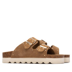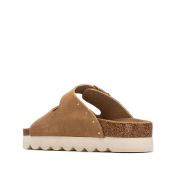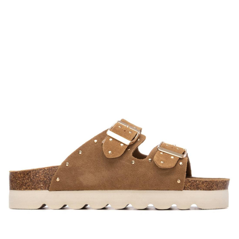 Sandalia de mujer, de la marca Refresh. Fabricada en serraje. Decorada con tachuelas planas. Correas con hebillas metalizadas para un ajuste perfecto. Planta bios. Gruesa suela dentada de goma.