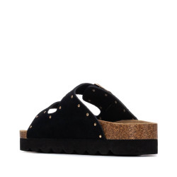 Sandalia de mujer, de la marca Refresh. Fabricada en serraje. Decorada con tachuelas planas. Correas con hebillas metalizadas para un ajuste perfecto. Planta bios. Gruesa suela dentada de goma.