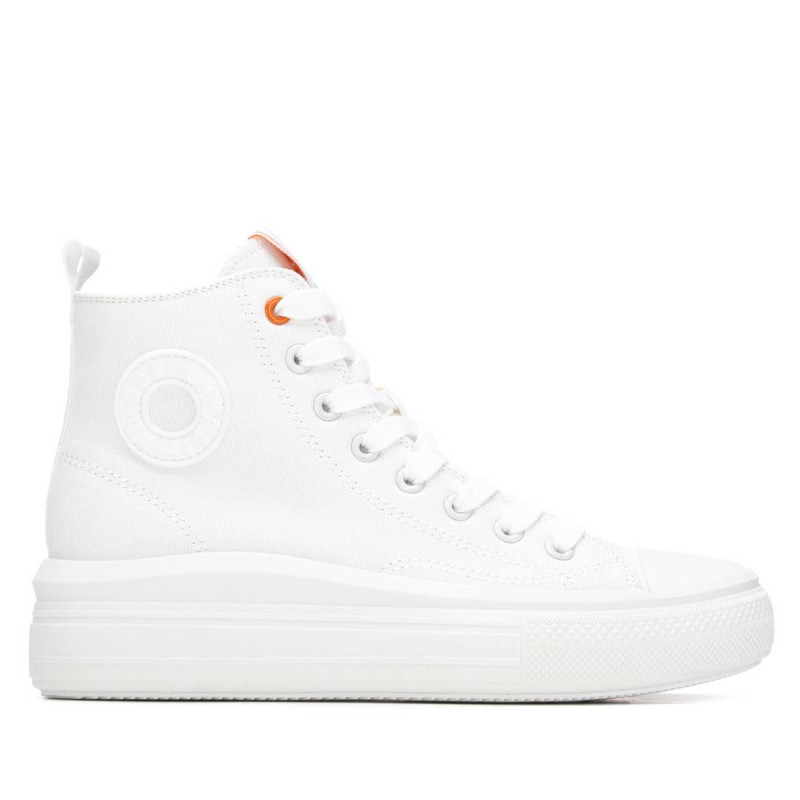 Botín deportivo tipo zapatilla de la marca Refresh. Fabricada en resistente lona. Tirador trasero. Cierre con cremallera interior. Suela gruesa de goma. Este modelo ha obtenido el certificado vegano por la organización mundial PETA (Organización de los derechos de los animales).