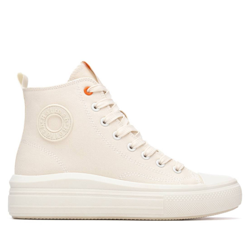 Botín deportivo tipo zapatilla de la marca Refresh. Fabricada en resistente lona. Tirador trasero. Cierre con cremallera interior. Suela gruesa de goma. Este modelo ha obtenido el certificado vegano por la organización mundial PETA (Organización de los derechos de los animales).