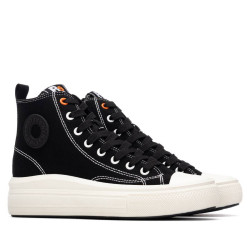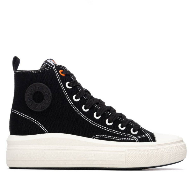 Botín deportivo tipo zapatilla de la marca Refresh. Fabricada en resistente lona. Tirador trasero. Cierre con cremallera interior. Suela gruesa de goma. Este modelo ha obtenido el certificado vegano por la organización mundial PETA (Organización de los derechos de los animales).