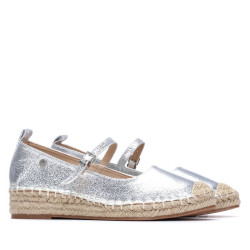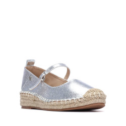 Zapato de mujer, de la marca Xti. Fabricado en material que imita la piel con acabado metalizado, que aporta un toque sofisticado y veraniego. Presenta una suela de esparto con una pequeña cuña, ideal para looks frescos y casuales. El modelo incluye una cinta con hebilla que aporta sujeción y un detalle decorativo distintivo. Cuenta con suela antideslizante, para mayor seguridad y comodidad en cada paso. Este modelo ha obtenido el certificado vegano por la organización mundial PETA (Organización de los derechos de los animales).