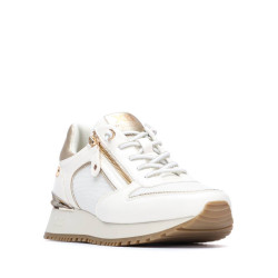 Zapatilla de mujer, de la marca Xti. Fabricada en material que imita la piel combinado con material textil, presenta detalles metalizados que aportan un toque moderno y sofisticado. Cuenta con cordones y cremallera lateral para un ajuste cómodo y práctico. Su suela deportiva, de diseño joven y actual, ofrece confort y estabilidad durante todo el día, ideal para un look casual con estilo. Este modelo ha obtenido el certificado vegano por la organización mundial PETA (Organización de los derechos de los animales).
