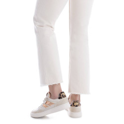 Zapatilla de mujer, de la marca Xti. Fabricada en material que imita la piel, con un elegante detalle metalizado en el lateral que aporta un toque moderno. La talonera con diseño animal print añade un estilo atrevido y actual. Modelo plano con cordones para un ajuste cómodo y personalizado. Ideal para combinar comodidad y tendencia en el día a día. Este modelo ha obtenido el certificado vegano por la organización mundial PETA (Organización de los derechos de los animales).