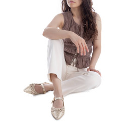 Bailarina de mujer, de la marca Xti. Modelo plano y cómodo, fabricado en material textil con efecto metalizado, ideal para aportar un toque de brillo a tus looks estivales. Su diseño destaca por un bonito trenzado en relieve, que forma figuras decorativas muy originales y femeninas. Cuenta con una correa con hebilla en el empeine y una tira adicional que sujeta el talón, ofreciendo un ajuste seguro y elegante. El tacón bajo con acabado metalizado aporta sofisticación sin perder confort. Además, incorpora una suela antideslizante, perfecta para disfrutar de cada paso con seguridad. Ideal para looks diarios con un punto chic. Este modelo ha obtenido el certificado vegano por la organización mundial PETA (Organización de los derechos de los animales).