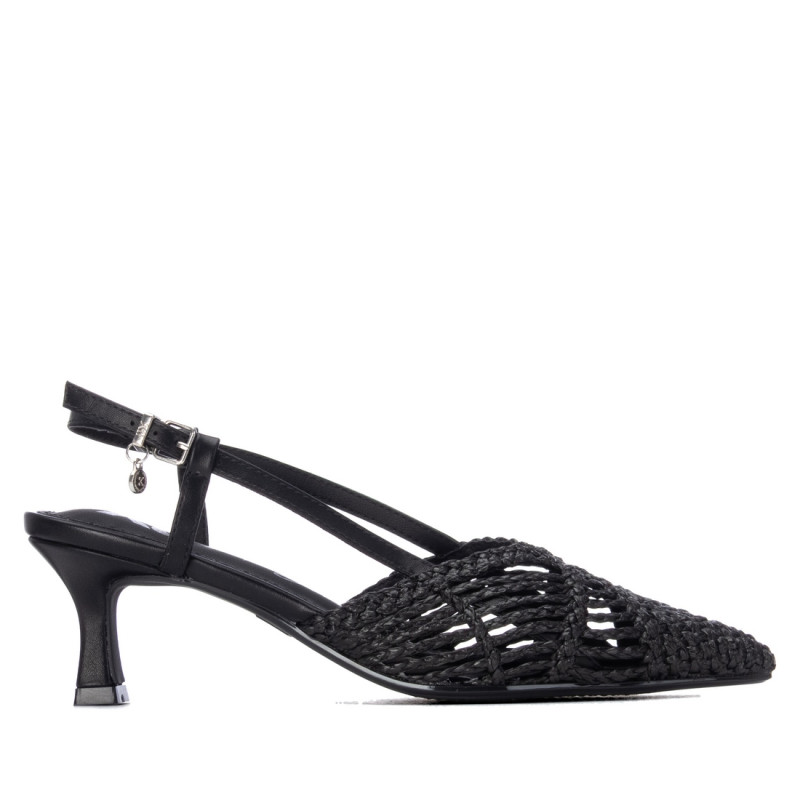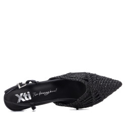 Salón de mujer, de la marca Xti. Fabricado en textil, este modelo combina elegancia y frescura, ideal para los meses de buen tiempo. Su diseño en punta estiliza la silueta, mientras que el tacón de aguja de 6 cm aporta altura con un toque sofisticado. Es un modelo destalonado, con una tira trasera que se sujeta al tobillo mediante hebilla, asegurando una buena sujeción sin perder estilo. Perfecto para ocasiones especiales o para elevar tus looks diarios con un aire natural y actual. Este modelo ha obtenido el certificado vegano por la organización mundial PETA (Organización de los derechos de los animales).