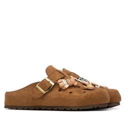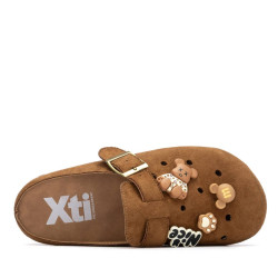Zueco de mujer, de la marca Xti. Fabricado en suave material de antelina, este zueco destaca por su diseño funcional y cómodo. Presenta unos agujeros delanteros que no solo aportan mayor transpirabilidad, sino que también permiten personalizar el modelo con decoraciones al gusto. Incorpora una tira decorativa con hebilla, que añade un toque de estilo y detalle al diseño. Su suela es plana con una altura de 3 cm, ofreciendo confort para el uso diario y adaptándose perfectamente a looks casuales de temporada. Este modelo ha obtenido el certificado vegano por la organización mundial PETA (Organización de los derechos de los animales).