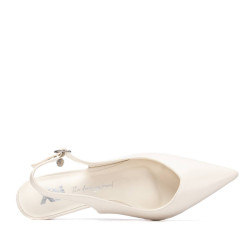 Salón de mujer, de la marca Xti. Fabricado en material que imita la piel, este modelo presenta un diseño elegante con punta afilada que estiliza la figura. Destalonado, cuenta con una fina tira al tobillo con cierre mediante hebilla que proporciona una sujeción segura y un ajuste cómodo. El tacón fino de 5 cm aporta la altura justa para alargar la silueta sin renunciar al confort. Un zapato versátil y sofisticado, ideal para acompañar tanto looks formales como estilismos más casuales en los días de entretiempo o eventos especiales. Este modelo ha obtenido el certificado vegano por la organización mundial PETA (Organización de los derechos de los animales).