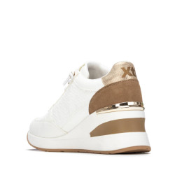 Zapatilla de mujer, de la marca Xti. Fabricada en material que imita la piel, presenta un bonito grabado con el logo de la marca que aporta un detalle distintivo y elegante. Cuenta con cordones y cremallera lateral para un calce rápido y cómodo. Incorpora una cuña de 7 cm que proporciona altura y confort, perfecta para un estilo casual con un toque moderno. Este modelo ha obtenido el certificado vegano por la organización mundial PETA (Organización de los derechos de los animales).